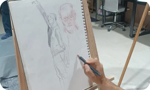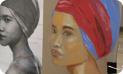 Encore une fois, la question aura en écho une réponse vaste ! Il y a tellement de techniques que l’on peut aborder en progressant vers les beaux-arts. Commençons déjà par la base avec du matériel de dessin. De bons crayons graphite plus ou moins gras et secs, une gomme mie de pain et une estompe, un bon papier choisi pour son grain afin de travailler des textures de peau ou de nature morte. Ou pourquoi pas en vous entraînant au croquis par les séances de modèle vivant ? Commencer par le dessin est un prérequis, c’est certain. Viendront ensuite les techniques en couleur comme la peinture à l’huile par exemple.